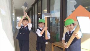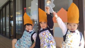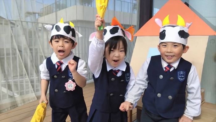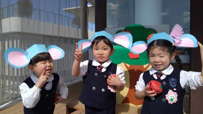 もも クラスページTOP Twitter Facebook はてブ Pocket LINE コピー 2025.02.252023.02.09 もも ~自分の思いを伝え、友だちの思いを受け入れながら、共通のイメージを膨らませる~ この時期のこどもたちは、様々な言葉を駆使し、自分なりの考えや思いを『言葉』で表現することが巧みになっていきます。幼稚園では、相手の表情を自分なりに読み取り、周囲の友だちの力をかりながら、“どうやったらわかってもらえるか”を一生懸命考えながら、自分なりに筋道を立てて伝えようとする場面にたくさん出会います。ただ、言葉が巧みになってきても、自分の生活体験や表現から相手の思いや考えをイメージするのが難しいこともあり、ちょっとしたすれ違いからのいざこざも増えていきます。そういった時には『ロールプレイ』を取り入れ、“クラスの考え事”としてみんなで考え、それそれが、自分の考えを整理し相手に筋道立てて(『文』として)伝えることを学び続けているところです。 そういったこどもたちの育ちをうけ、参観では、●物語や役のイメージ・登場人物の気持ちを友だちと共有し、表現することを楽しむ。●言葉にすることで、伝わることの嬉しさを感じる●教師や友だちに伝えたいことが伝わるように、“文”を意識しながら話す●劇遊びを通じて色々な伝え方があることを知る というねらいをたて、日々取り組んできた内容をご覧いただきます。題材は、イメージを共有しやすいよう、これまで読んできた絵本の中でこどもたちが好きだったり、たくさんの思いを話していた印象深いものです。ひまわり組:『さるかにがっせん(文絵/いもと ようこ 出版社/金の星社 )』を楽しむも も組 :『おおきなかぶ(作/トルストイ 絵/ニーアム・シャーキー 訳/中井貴恵 出版社/ブロンズ新社)』を楽しむ 絵本の世界観を楽しみながら、こどもたちなりに考えた内容が言葉や物のやり取りで表現されています。こどもたちが、それぞれの登場人物になって考えてきた過程を、どうぞご覧ください。 ※今回の活動は、IBの視点でも取り組みの過程をご紹介します。ポートフォリオも併せてご覧ください 配役 おじいさん おばあさん うしさん ぞうさん かばさん ねずみさん 取り組みの様子を動画でご覧ください