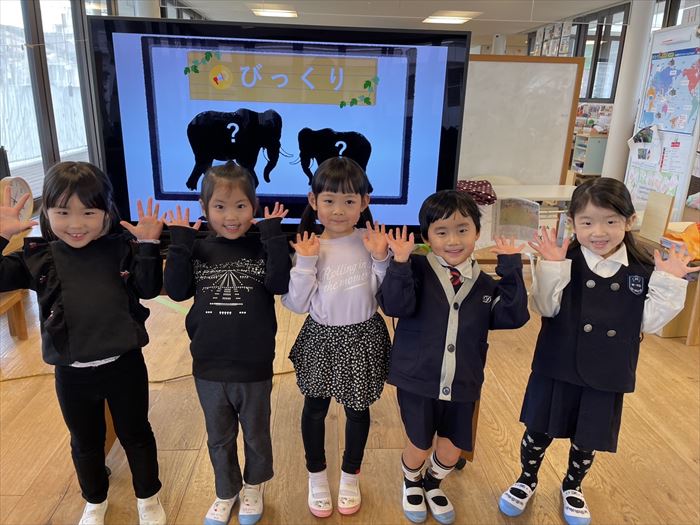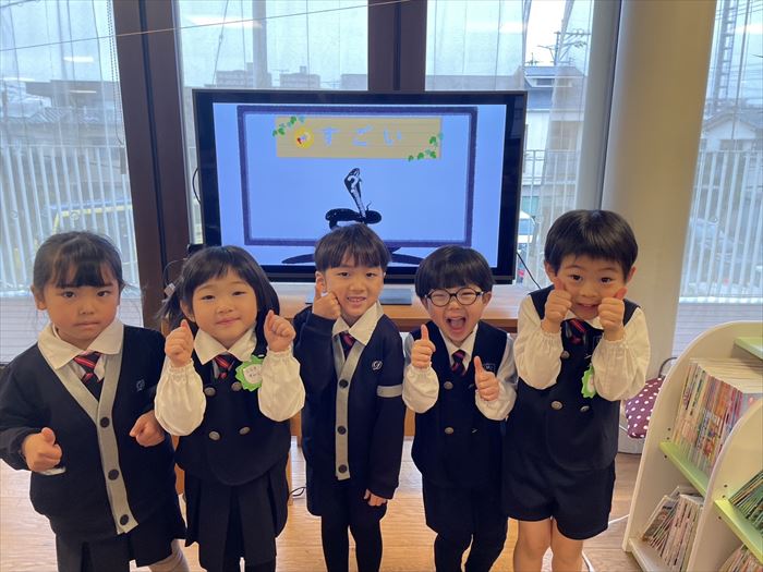 この時期のこどもたちは、“文字”の興味も高まり『話すこと』『聞くこと』以外にも、『書くこと』『読むこと』に関しても関心を深める様子が見られます。“どうしてかな”“知りたいな”と感じることに、自分なりの答えを見つけようと身近な人に聞いてみたり、本を読んだりして『調べる』ことも楽しいと感じています。今まで興味を示さなかったこどもたちが、こういった友だちの影響を受け、“文字”への関心を深めていく様子もあります。